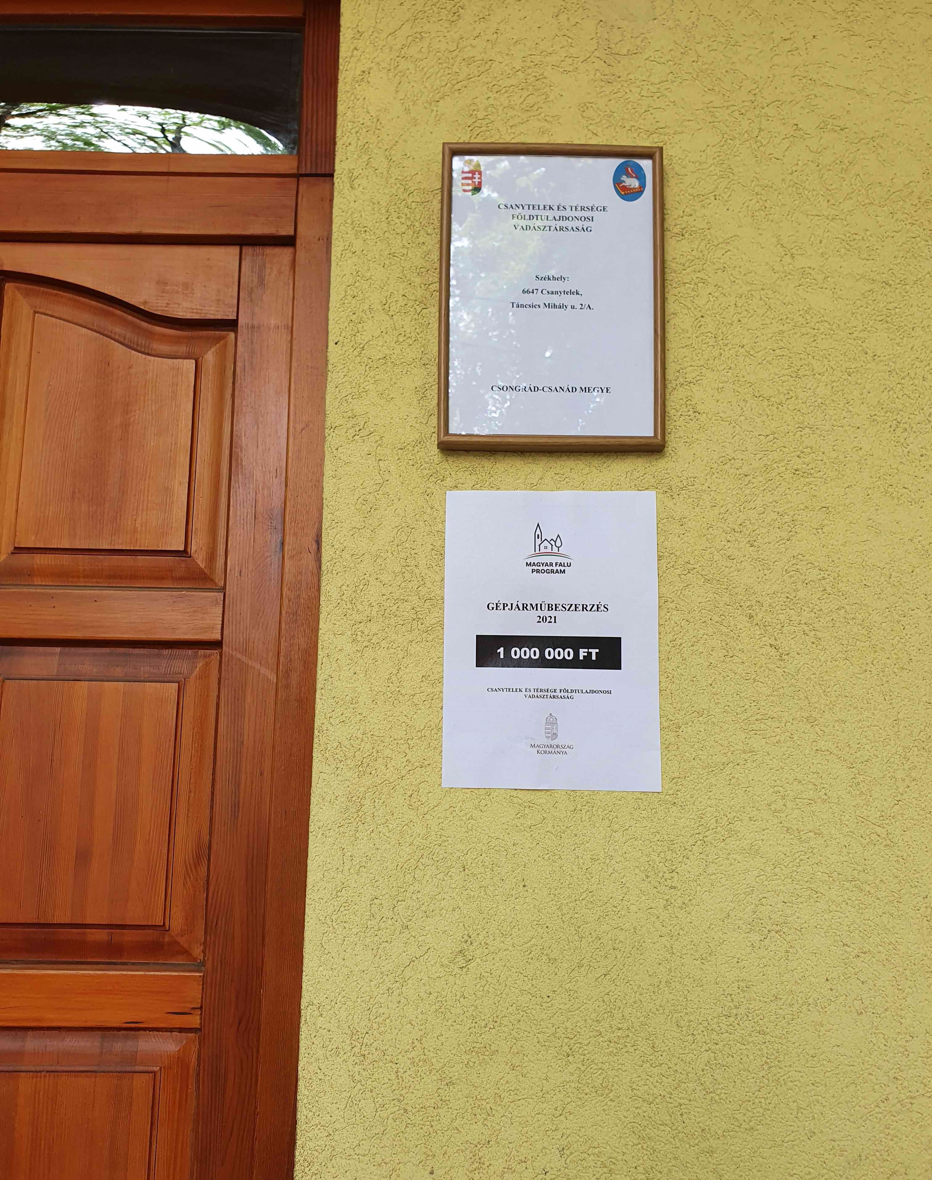 „Csanytelek és Térsége Földtulajdonosi Vadásztársaság gépjárműbeszerzése a Magyar Falu Program Falusi Civil Alap keretében” |