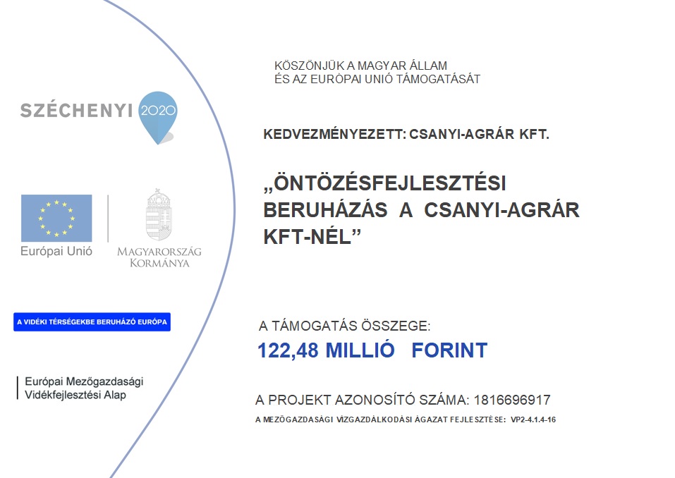 "Öntözésfejlesztési beruházás a Csanyi-Agrár Kft-nél" |